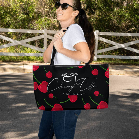 Cherry Elle Smiles Weekender Tote Bag | Overnight Bag | Beach Bag | Carrryall