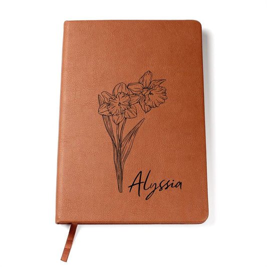 Personalized Birth Flower Writer's Journal | For Her | Vegan Leather | Ruled Notebook