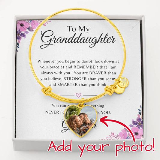 Granddaughter - Never Forget - I Love You - Heart Bangle Bracelet