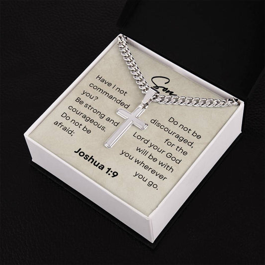 Son, Be Strong | Joshua 1:9 | Cross Necklace